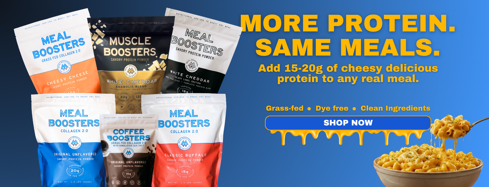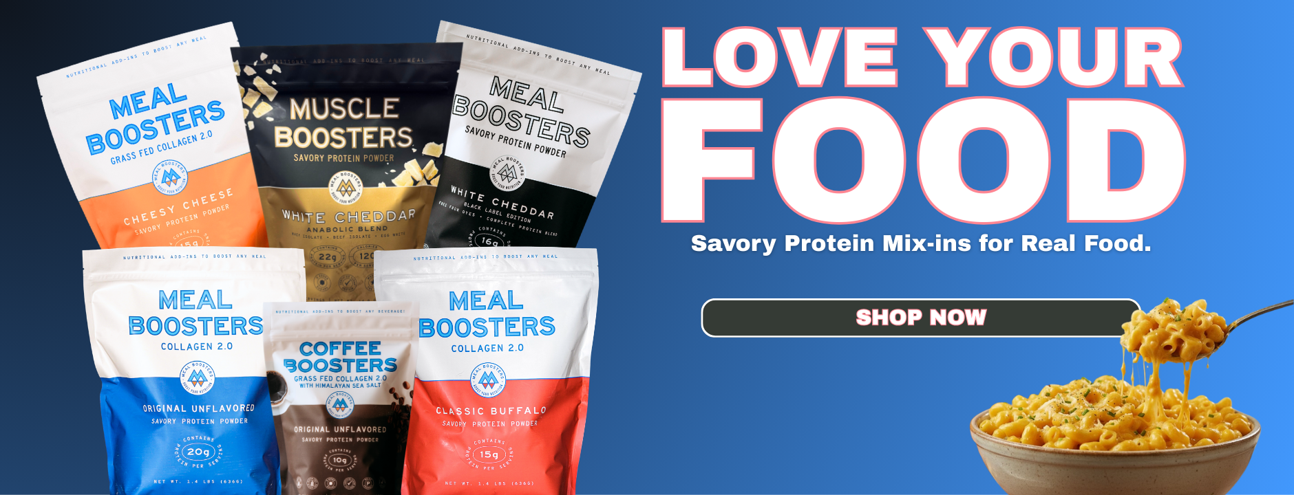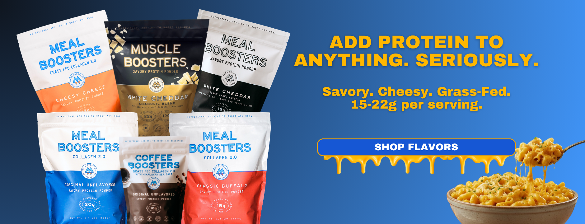 I bought White Cheddar Meal Booster and made macaroni and cheese using blended cottage cheese and it was delicious - my picky son thought so too! There are lots of sweet protein products available on the market - I much prefer savory foods so I really appreciate this Meal Booster product.